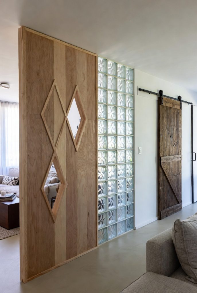 What they are: Partitions combining materials like wood, glass, metal, or fabric.