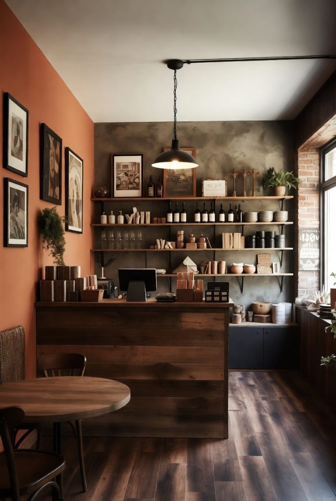 Use bold colors in a balanced way. A feature wall or colorful display section can make your shop look modern without overwhelming the space.
