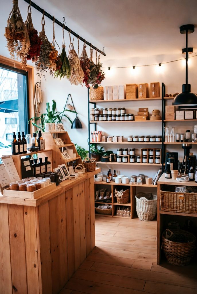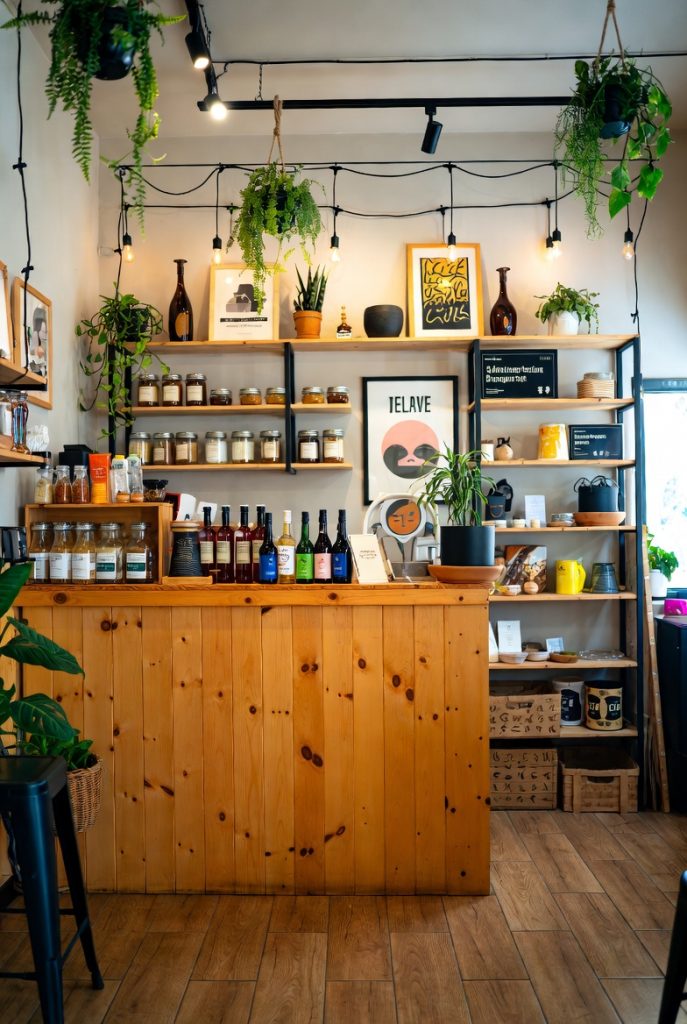 Tall shelves or hanging displays help you use space smartly without crowding the shop.